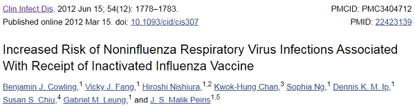 Titled, “Increased Risk of Noninfluenza Respiratory Virus Infections Associated With Receipt of Inactivated Influenza Vaccine,” the study is found at this link at the National Library of Medicine: