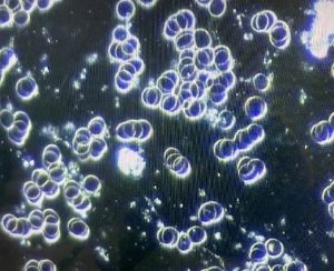 As you will see in the top image, the patient’s blood cells are all clotted together due to having been poisoned by Fauci Flu shots. The second image, comparatively, shows those same blood cells adjusted back to their normal state following treatment. Both images are of blood cells analyzed from a 62-year-old woman who got injected.